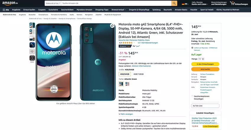 Moto G42 op Amazon: smartphone met AMOLED-scherm, Snapdragon 680-chip en 5000mAh-batterij voor €145 (64€ korting)