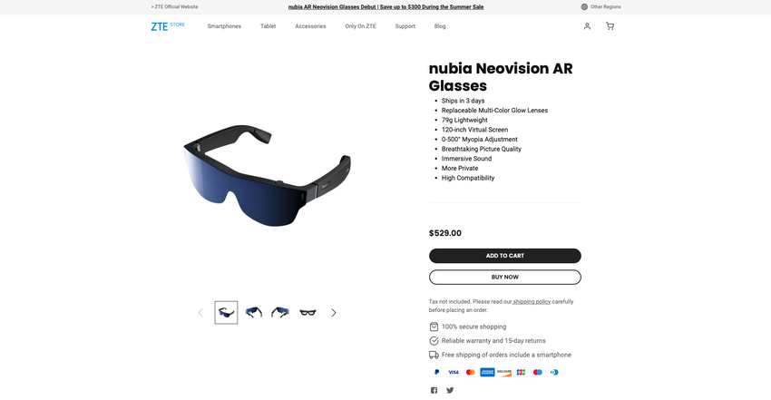 nubia Neovision Glass met 120" virtueel scherm gaat in de verkoop
