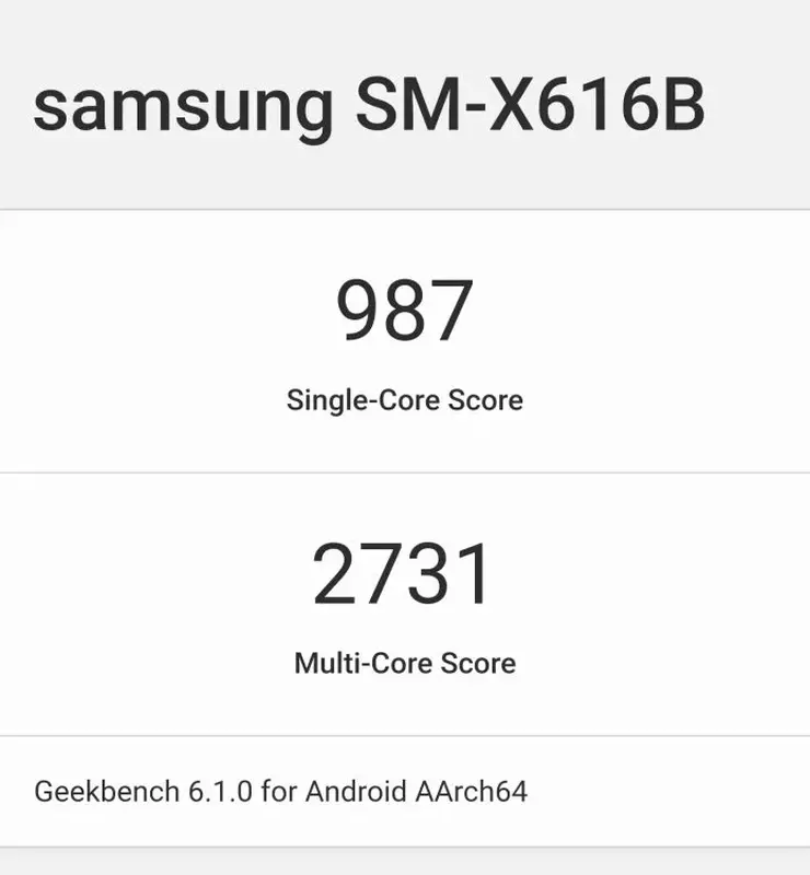 De Samsung Galaxy Tab S9 FE+ is geslaagd voor de prestatietest in de Geekbench 6 benchmark. De tablet heeft modelnummer SM-X616B. Het resultaat in de Single-Core en Multi-Core modi was respectievelijk 987 en 2731 punten.
