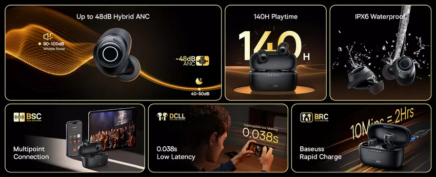 De noviteit heeft een vacuüm constructie en beschikt over een hybride Active Noise Cancellation (ANC) en Environmental Noise Cancellation (ENC) systeem. De hoofdtelefoon ondersteunt Bluetooth 5.3 connectiviteit met een lage latentie van 0,038 seconden. Baseus heeft het nieuwe product ook uitgerust met een dubbel diafragma van titanium dat geschikt is voor gebruik in de ruimte. Het apparaat heeft IPX6 bescherming tegen water en zweet. Wat betreft autonomie, deze gaat tot 8 uur mee. De behuizing verhoogt dit cijfer tot een record van 140 uur.