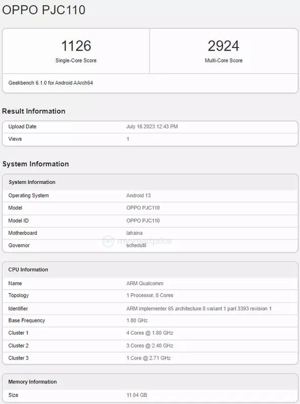 Volgens het rapport komt de smartphone voorbij met het modelnummer PJ110. De nieuwigheid zal draaien op een achtkernige Qualcomm Snapdragon 782G-processor. Daarnaast zal het toestel worden uitgerust met 12 GB RAM. Out of the box in de OPPO K11 zal besturingssysteem Android 13 geïnstalleerd worden.