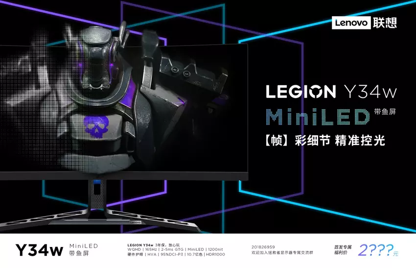 Lenovo heeft de Legion Y34w monitor geïntroduceerd met een 165Hz Mini-LED scherm en een prijs tot $420