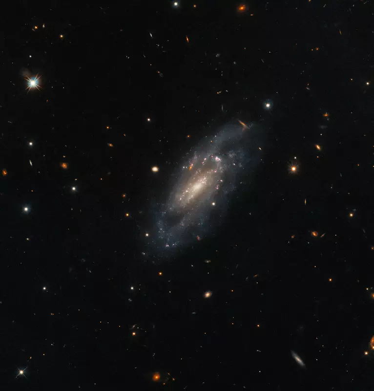 Hubble heeft een foto gemaakt van een ver sterrenstelsel in het sterrenbeeld Pegasus dat een onvoorstelbaar krachtige stellaire explosie heeft overleefd.