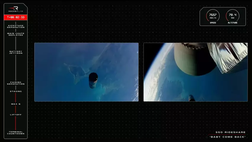 Het bedrijf heeft ooit geprobeerd om de booster te vangen met behulp van een helikopter, maar beide experimenten waren niet succesvol. Rocket Lab heeft daarom besloten om parachutes te gebruiken om de eerste trappen voorzichtig terug te brengen naar de aarde.