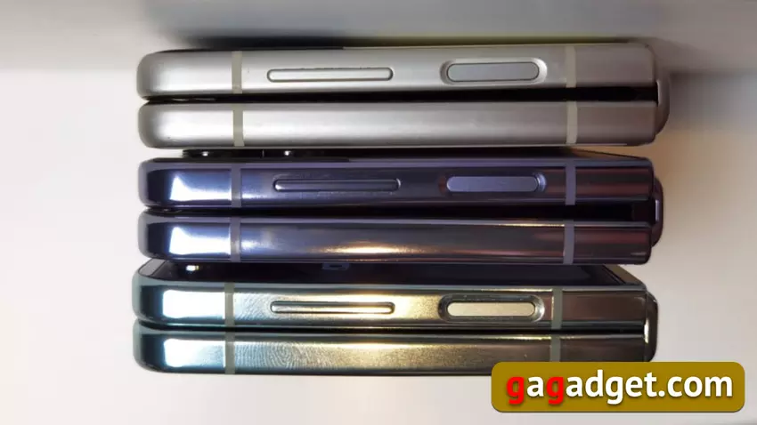 Op de foto (van boven naar beneden), Flip3, Flip4 en Flip5 smartphones: