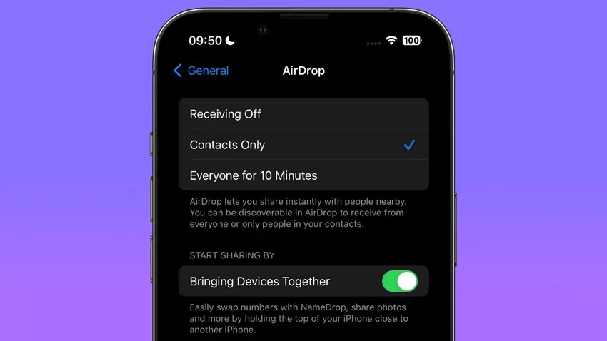 Ook hebben ze in iOS 17 Beta 4 een sectie Start Delen Door toegevoegd aan het AirDrop-menu, met daarin een schakelaar om apparaten samen te brengen. Hiermee kun je NameDrop handmatig in- en uitschakelen.