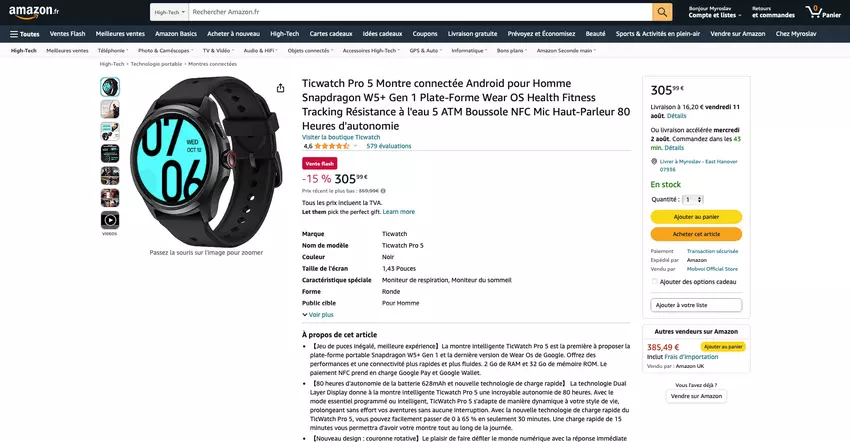We hebben het over de TicWatch Pro 5. Het horloge is alleen verkrijgbaar in het zwart en kost 159,99 € 169,99 €, -6%.
