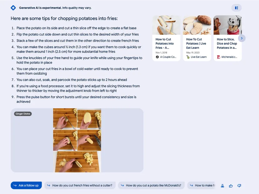 Google's Search Generative Experience zoekmachine, aangedreven door kunstmatige intelligentie, heeft geleerd om afbeeldingen en video's te produceren in zijn resultaten.