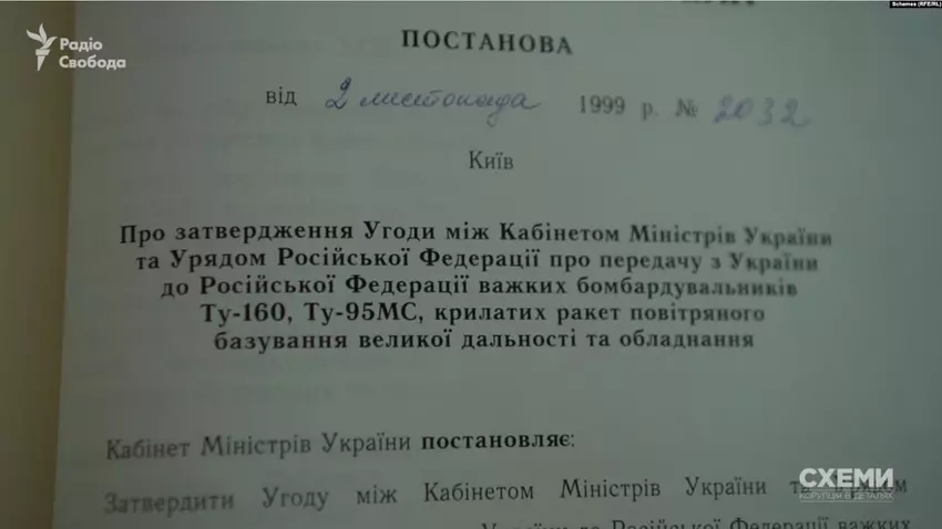 Eind 1999 kwam het kabinet van ministers van Oekraïne met de Russische regering overeen dat de schuld voor gas zou worden gecompenseerd met raketten en strategische bommenwerpers. Het ging om een bedrag van 275 miljoen hryvnias ($70 miljoen op dat moment en $7,5 miljoen nu).