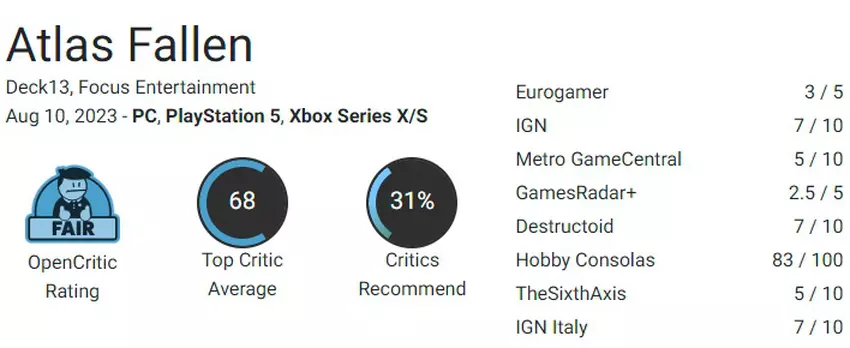 - is de situatie nog slechter: gebruikers gaven Atlas Fallen slechts 43% positieve beoordelingen.