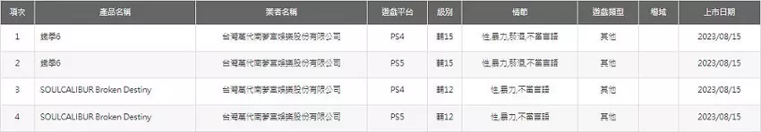 De Taiwanese certificeringscommissie heeft de vechtgames Tekken 6 en Soulcalibur: Broken Destiny een nieuwe leeftijdsclassificatie gegeven.