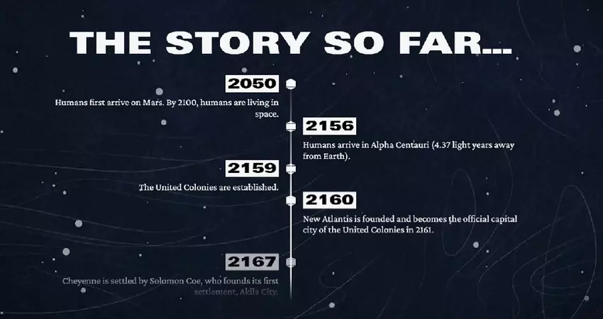 Bethesda heeft een gedetailleerde backstory gepubliceerd, die de periode van 2050 tot 2330 beslaat, van het ruimte rollenspel Starfield.