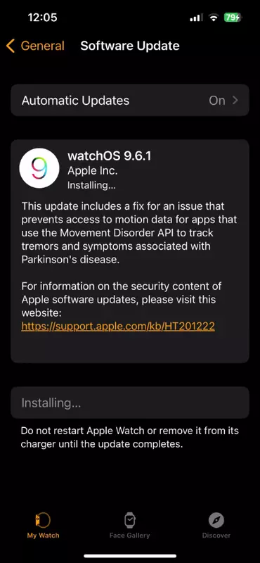 De nieuwe firmwareversie heeft buildnummer watchOS 9.6.1 gekregen. Het systeem is al in golven uitgerold naar apparaten over de hele wereld.