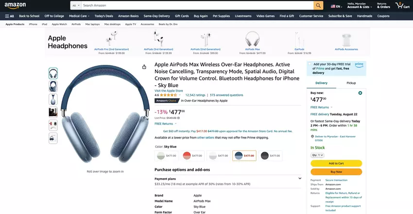 Aanbieding van de dag: AirPods Max met ANC bij Amazon voor € 72 korting