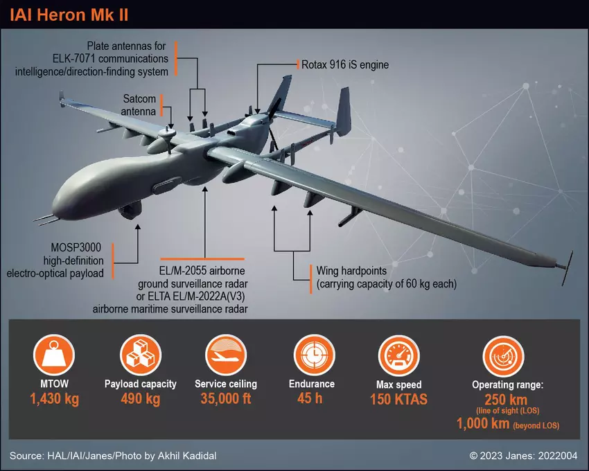 India gaat Israëlische Heron Mk II verkenningsdrones gebruiken om de grens met Pakistan en China te bewaken