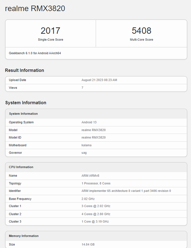 In de aanloop naar de presentatie op 28 augustus is er een nieuwe Realme-smartphone gespot in de Geekbench-database.