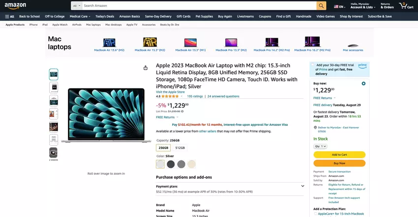 De 15-inch MacBook Air met M2-chip is te koop bij Amazon voor € 1229 (€ 70 korting).