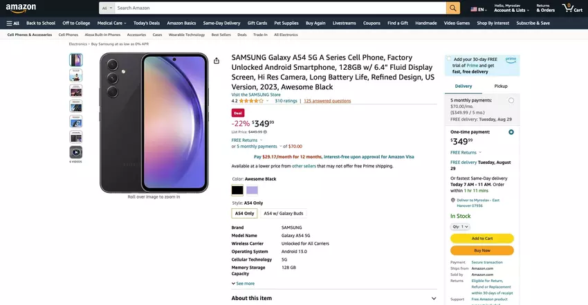 Aanbieding van de dag: de Samsung Galaxy A54 5G op Amazon voor $100 korting