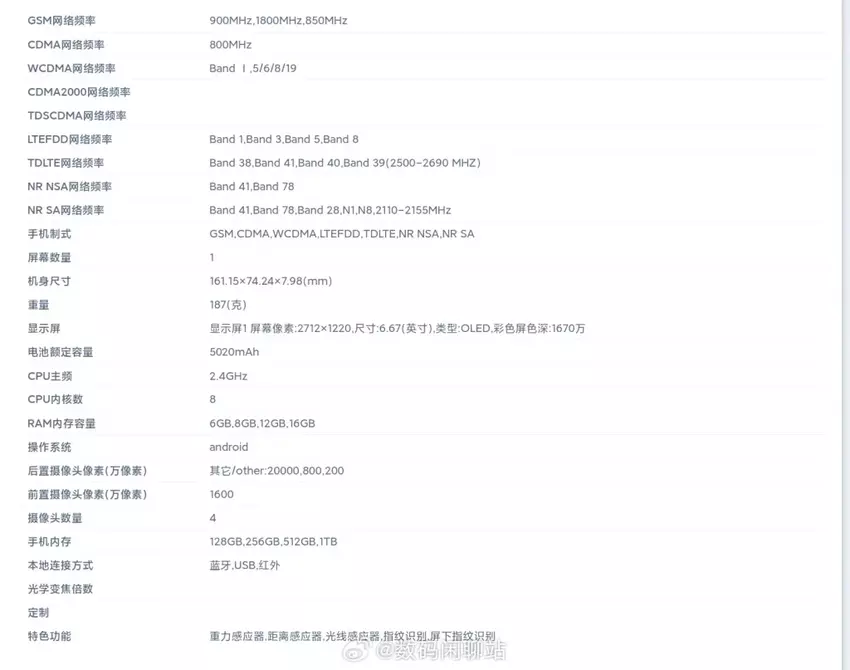 Maar er is wel informatie over de camera's. Aan de achterkant worden drie modules geplaatst met een resolutie van 200 MP, 8 MP en 2 MP. Voor degenen die graag selfies nemen, zal er een frontcamera zijn op basis van een 16 MP beeldsensor.