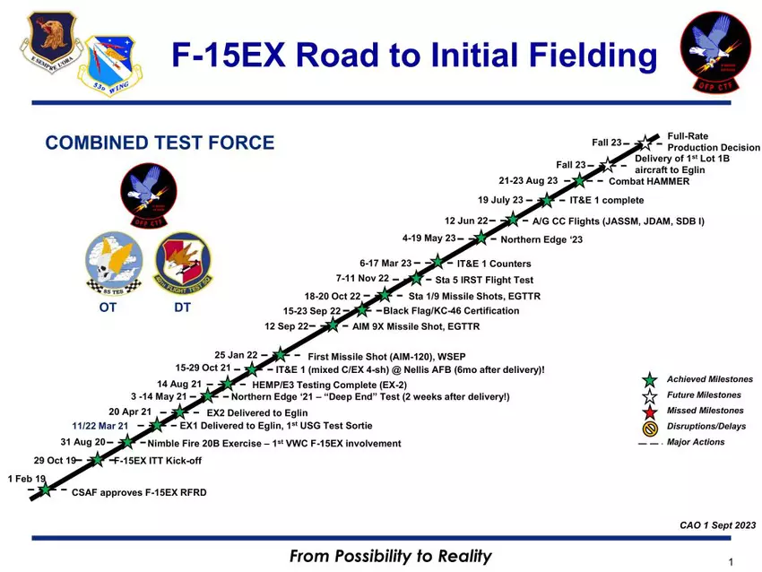 Een woordvoerder van de 53rd Air Wing merkte op dat alles perfect verliep. De tests bevestigden het vermogen van het verbeterde F-15EX Eagle II gevechtsvliegtuig om drie precisiekruisraketten te gebruiken in de strijd.