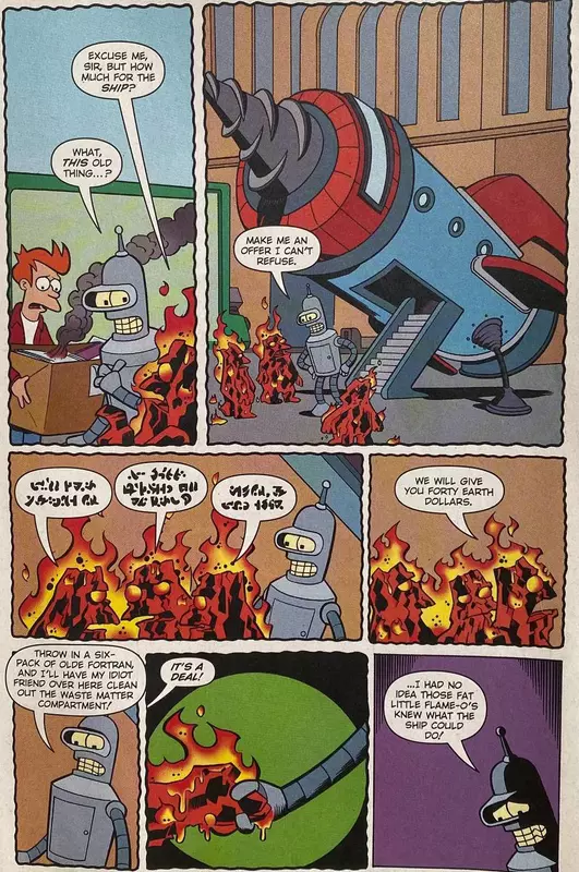 Professor Farnsworth wordt altijd afgeschilderd als een man zonder respect voor de levens van zijn bemanning. In Bongo's Futurama-strips doodt hij, slechts een paar nummers voordat zijn korstdoorborende schip bijna de aarde vernietigt, bijna al het personeel van Planet Express, waardoor de sinistere Golden Bender ontstaat.