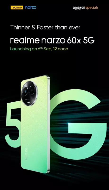 Het is officieel: realme Narzo 60x met 120Hz scherm, MediaTek Dimensity 6100+ chip en 33W opladen wordt onthuld op 6 september