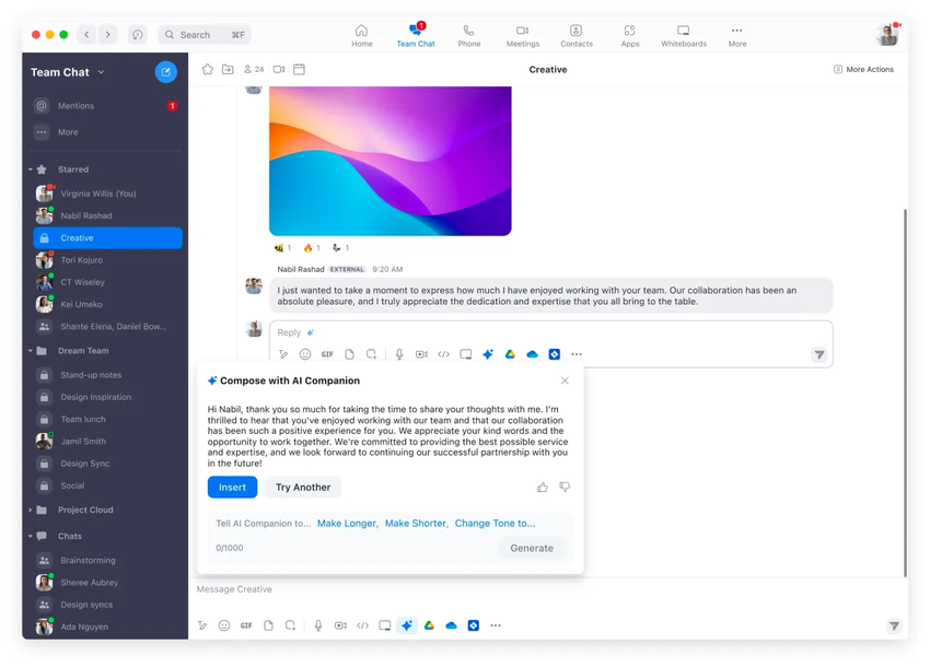 De mogelijkheden van AI Companion worden uitgebreid naar alle nieuwe producten in het ecosysteem van Zoom, waaronder Zoom Whiteboard, Zoom Team Chat en Zoom Mail.