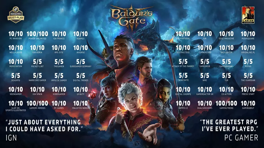 Larian bedankte ook iedereen voor hun steun, publiceerde de persrecensies van het spel en voegde eraan toe dat ze zich geen betere reacties hadden kunnen wensen voor BG 3.