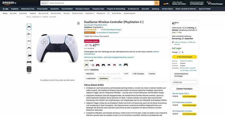 De DualSense-controller voor PlayStation 5 is nu verkrijgbaar op Amazon voor een promotieprijs.