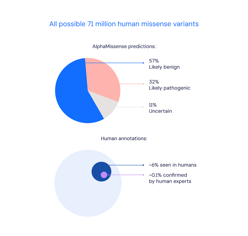 AlphaMissense voorspelde de pathogeniteit van alle 71 miljoen mogelijke missense mutaties