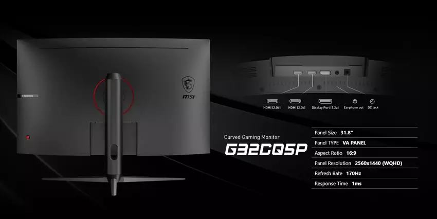 MSI G32CQ5P biedt ondersteuning voor Adaptive-Sync en HDR. Voor aansluiting is er een DisplayPort 1.2a en twee HDMI 2.0b aansluitingen met ondersteuning voor respectievelijk 1440p@170FPS en 1440p@144FPS. De monitor heeft ook een hoofdtelefoonuitgang.