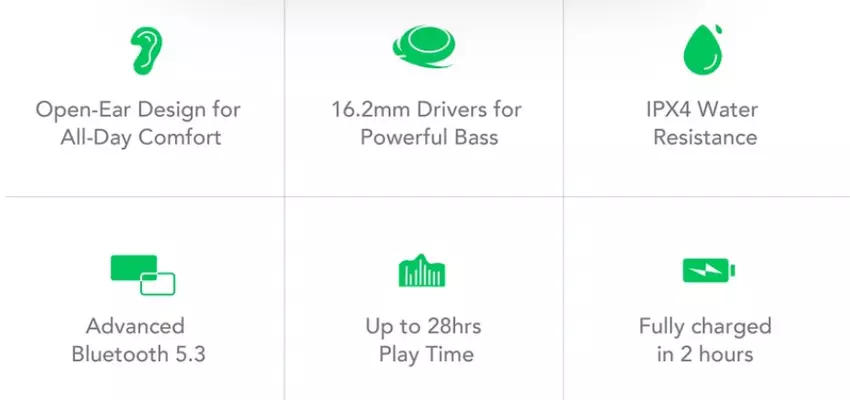 Het model is geschikt voor sportactiviteiten. Hij heeft IPX4 spatwaterbescherming, wat betekent dat hij niet bang is voor regendruppels en zweet. Dankzij de over-ear bevestiging zal de hoofdtelefoon niet vallen tijdens het hardlopen. Verbinding met smartphones wordt gemaakt via het Bluetooth 5.3 protocol.