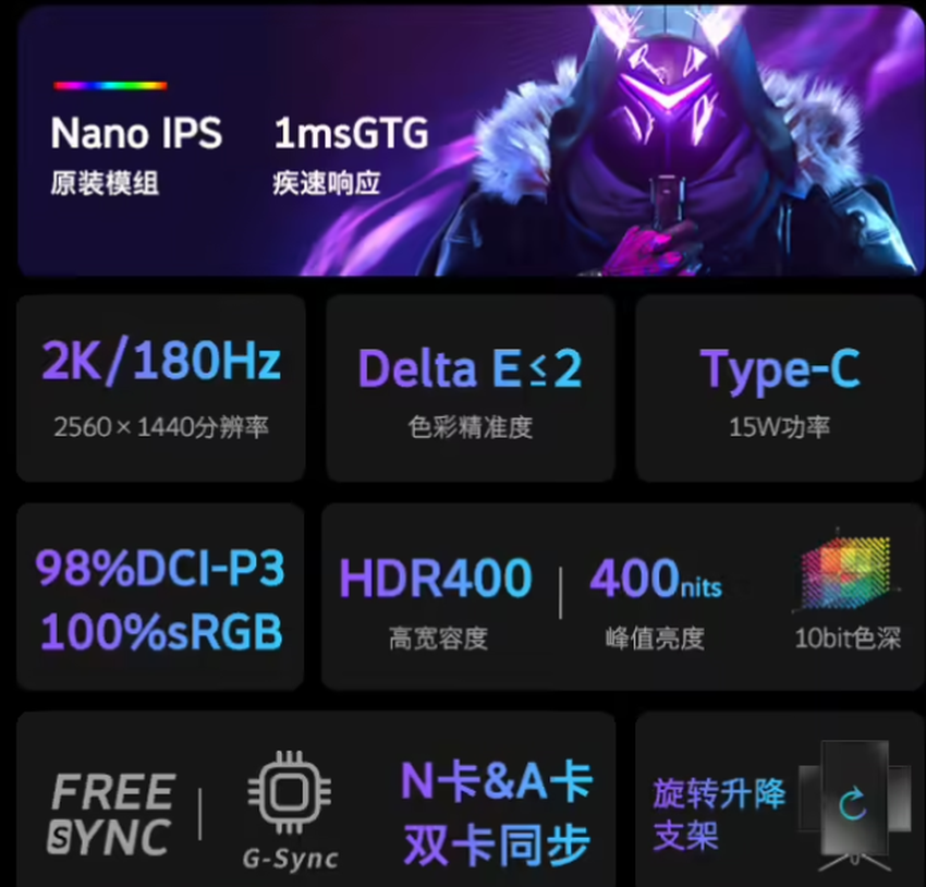 De noviteit heeft de naam Skyworth F27G51Q Pro gekregen. Het apparaat is uitgerust met een 27-inch NanoIPS-paneel met een resolutie van 2560×1440p, een verversingssnelheid van 180 Hz en een responstijd van 1 ms. Volgens de fabrikant ondersteunt de nieuwigheid AMD FreeSync- en NVIDIA G-Sync-technologieën. De monitor heeft ook een helderheid van 400 nits, 100% dekking van sRGB en 98% DCI-P3. Van de poorten in de nieuwigheid heeft HDMI 2.0, DisplayPort 1.4, 3,5mm, evenals USB-C met de mogelijkheid om andere apparaten op te laden met maximaal 15W.