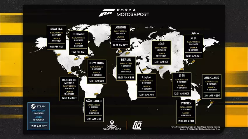 - De volledige release van Forza Motorsport vindt plaats op 10 oktober om 12:01 uur plaatselijke tijd.
