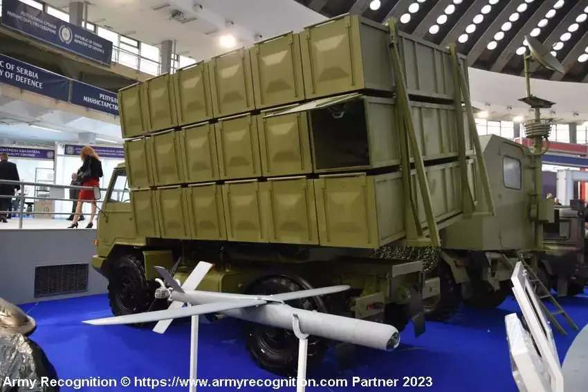 De wapententoonstelling Partner 2023 vindt plaats in Servië. Het lokale bedrijf Yugoimport presenteerde een kamikaze drone genaamd Raven 145.