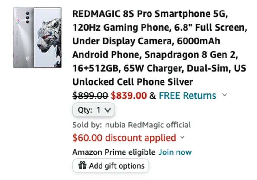 Red Magic 8S Pro gaming smartphone met Snapdragon 8 Gen 2 chip, in-screen camera en 6000 mAh batterij is te koop op Amazon met 130 dollar korting