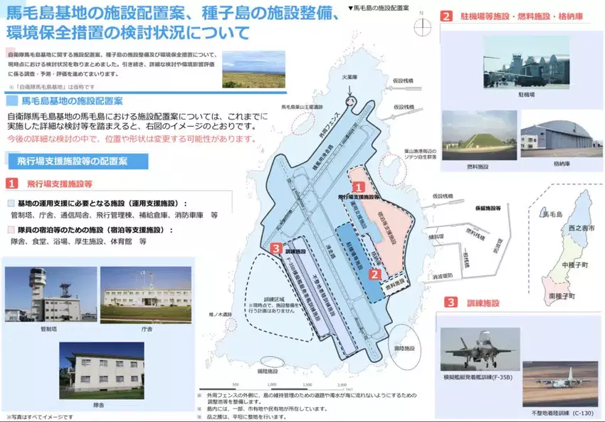 Japan bouwt nog een militaire basis 140 kilometer naar het zuidwesten. Deze komt op het eiland Migishima. Aannemers werken zonder weekend om het werk binnen vier jaar af te krijgen. In het eerste jaar ligt de focus op de bouw van administratieve gebouwen, brandstofdepots en twee landingsbanen.