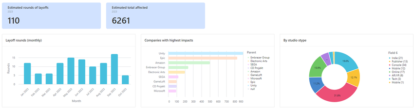 In totaal zijn er minstens 6000 ontslagen gevallen in de game-industrie. September werd de "leider", toen 17 bedrijven banen schrapten. In een gesprek met GamesIndustry.biz noemden analisten, recruiters en investeerders het huidige economische klimaat als leidende factor, met hoge rentetarieven, tragere groei, hogere productiekosten en toegenomen concurrentie als slechts enkele redenen voor de massaontslagen.