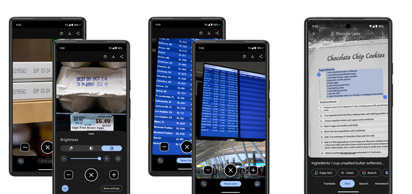 Eenmaal vastgelegd kan tekst gekopieerd, getikt of naar Google Lens gestuurd worden. Opgeslagen foto's komen niet in de camerafeed, maar je kunt ze opslaan in een aparte map.
