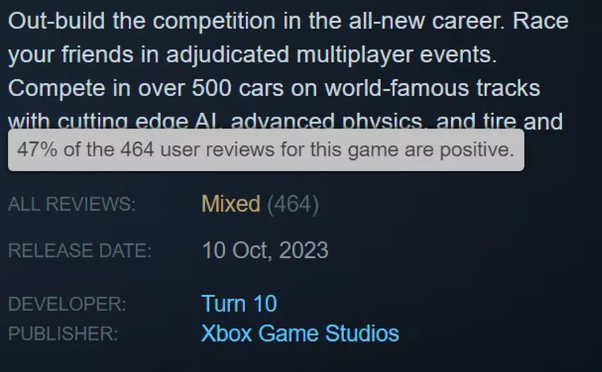 Weinig content en veel bugs: Steam-gebruikers hadden kritiek op Forza Motorsport racesimulator, die vandaag is uitgebracht