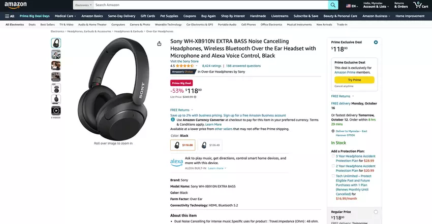 Sony WH-XB910N met ANC kan op Amazon Prime Day worden gekocht met een korting van $ 131