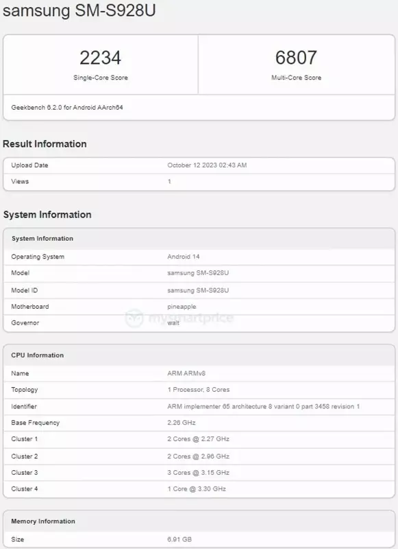 Wat betreft de testresultaten scoorde de smartphone 2.234 punten in single-core en 6.807 punten in multi-core. Dit is 15 procent en 35 procent meer dan de Galaxy S23 Ultra met de Snapdragon 8 Gen 2-chip aan boord.