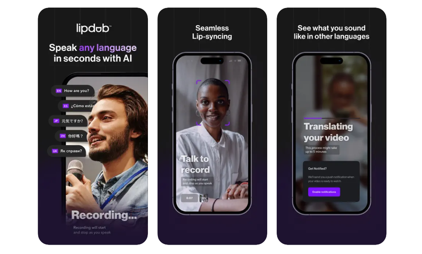 De app Lipdub is gratis verkrijgbaar in de App Store. De app ondersteunt Frans, Hindi, Spaans, Italiaans, Portugees, Japans en Oekraïens. Het is ook mogelijk om jargon en zelfs babygebrabbel te gebruiken.