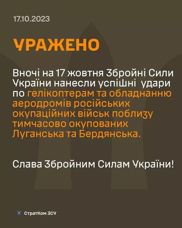 In de nacht van 17 oktober hebben de Oekraïense strijdkrachten met succes luchthavens aangevallen in de tijdelijk bezette gebieden.