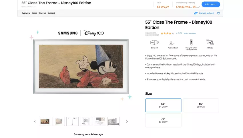 Samsung heeft The Frame TV Disney 100 Edition TV's teruggebracht met schermformaten van 55, 65 en 75 inch.