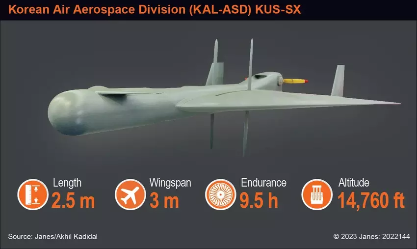 Korean Air Aerospace Division (KAL-ASD) heeft een nieuw onbemand luchtvaartuig onthuld op ADEX 2023 in Seoul. Het kreeg de naam KUS-SX.