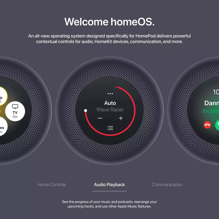 Om een volledig functioneel display toe te voegen, heeft Apple enkele tvOS-apps herschreven om op verschillende displayformaten te kunnen werken. Als gevolg daarvan gebruikt de HomePod een aangepaste versie van tvOS zonder gebruikersinterface.