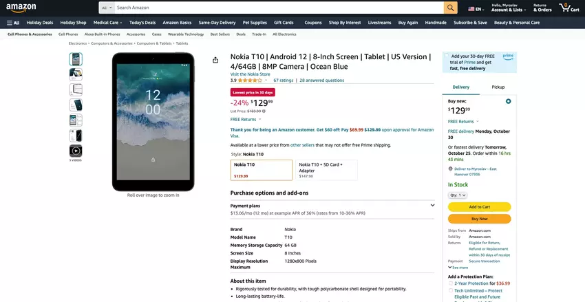 De Nokia T10 met een 8-inch scherm, Unisoc T606-chip en 5250 mAh batterij kan worden gekocht op Amazon voor $129 ($40 korting).
