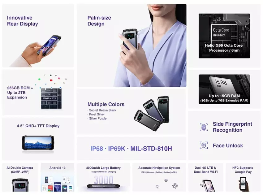 Doogee Smini - Helio G99, 50MP camera, twee schermen en een robuuste behuizing voor €275