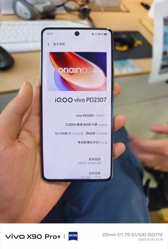 De iQOO 12 met een plat scherm en Snapdragon 8 Gen 3-chip is opgedoken op een foto